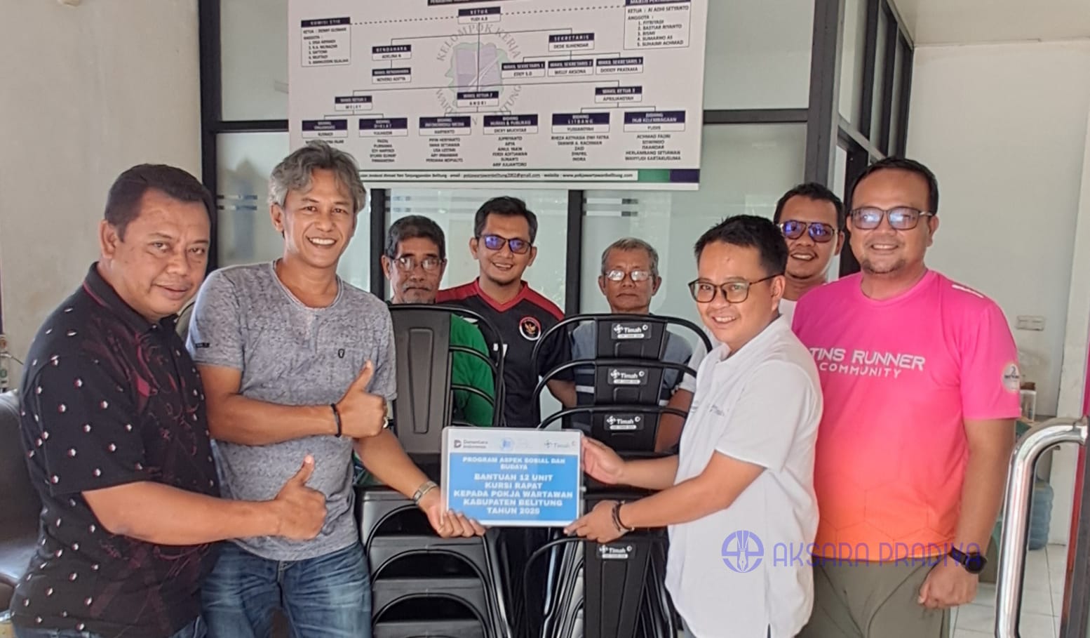 BELITUNG, aksarapradiva.com – Sebagai bentuk kepedulian dalam mendukung tugas jurnalistik di Kabupaten Belitung, Jum’at pagi 17 April 2026, PT Timah Tbk menyerahkan bantuan 12 unit kursi rapat untuk Organisasi Kelompok Kerja (Pokja) Wartawan Belitung.