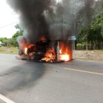 Berdasarkan informasi, sebelum terbakar diketahui mobil yang mengangkut barang dagangan ini mengalami pecah ban belakang, dan sempat sempat terbalik di jalan raya